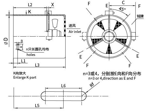 根據(jù)各客戶提供的圖紙或?qū)崢樱庸じ鞣N帶制動(dòng)器手柄槽、特殊安裝孔等特配風(fēng)機(jī)。